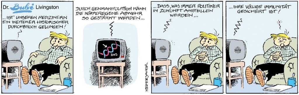 Dr. Bubi Livingston erscheint seit 1990 in der WAZ (Westdeutsche Allgemeine Zeitung), und das bis heute jeden Samstag in der Wochenendausgabe.Auf dieser Website erscheinen in regelmäßigen Abständen alte und neue BUBI-Strips.
